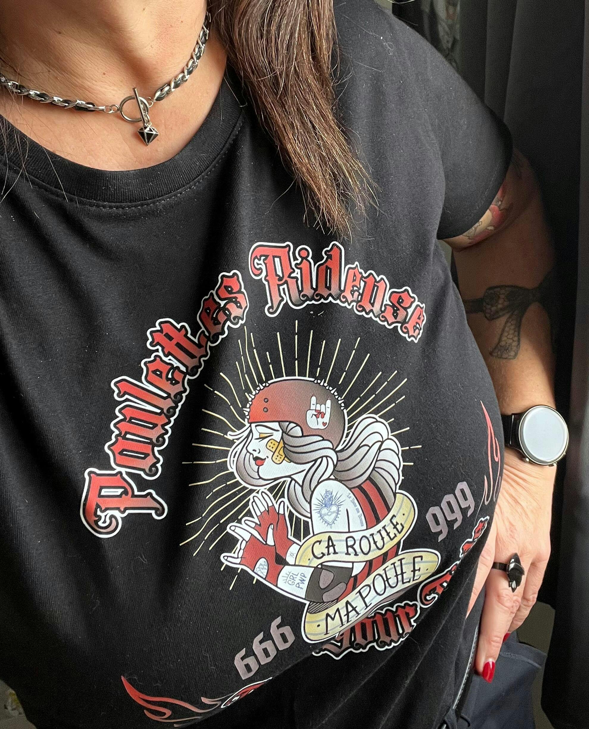 Women's Round Neck T-shirt "It's rolling my chick" Black