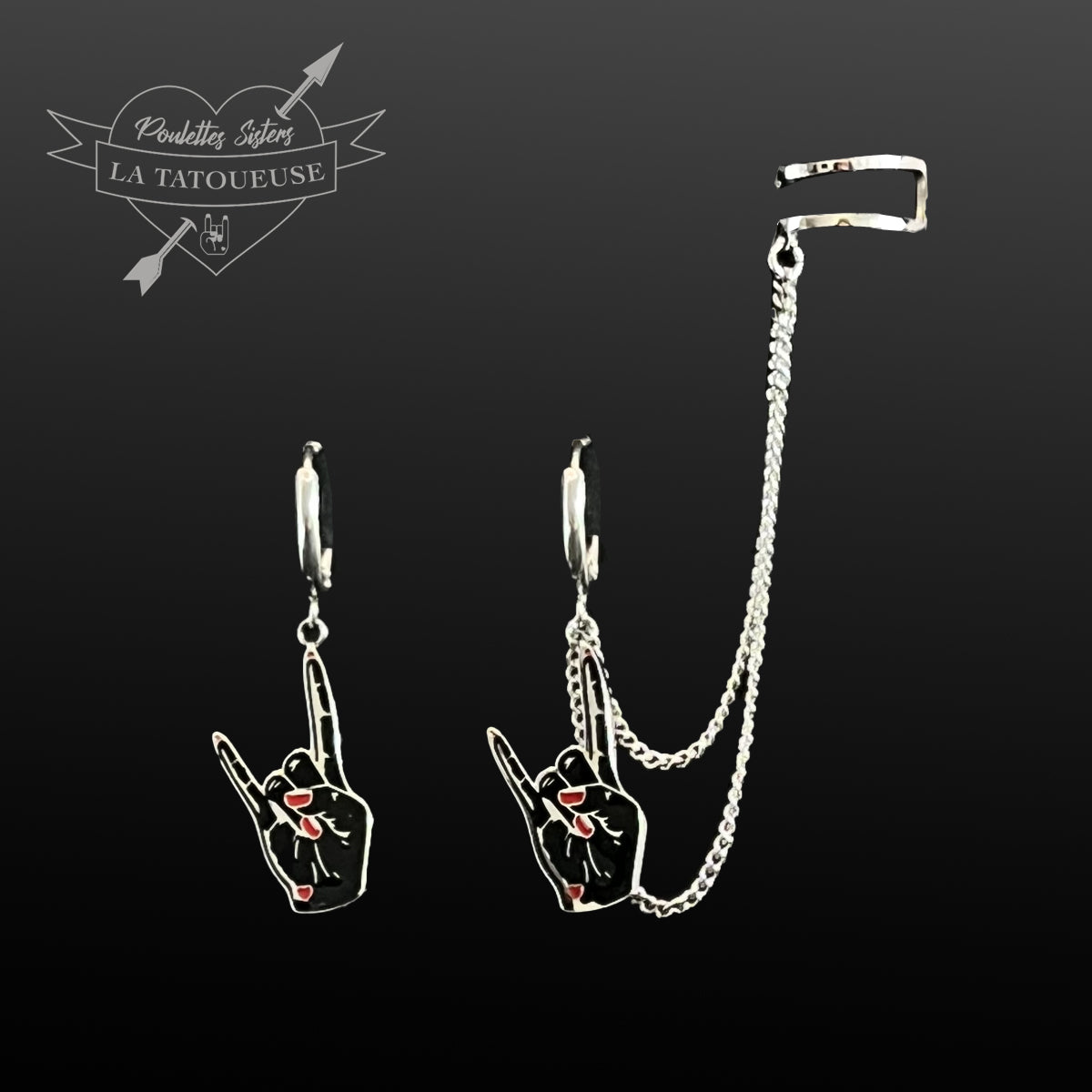 Boucles d'oreilles avec earcuff chaine "Poulette Horn Up" – POULETTES SISTERS × La Tatoueuse de Bijoux