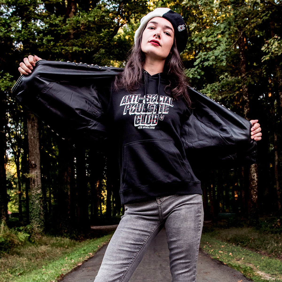 Sweat à capuche Femme "Anti social Poulette Club" Noir