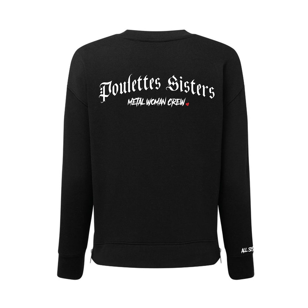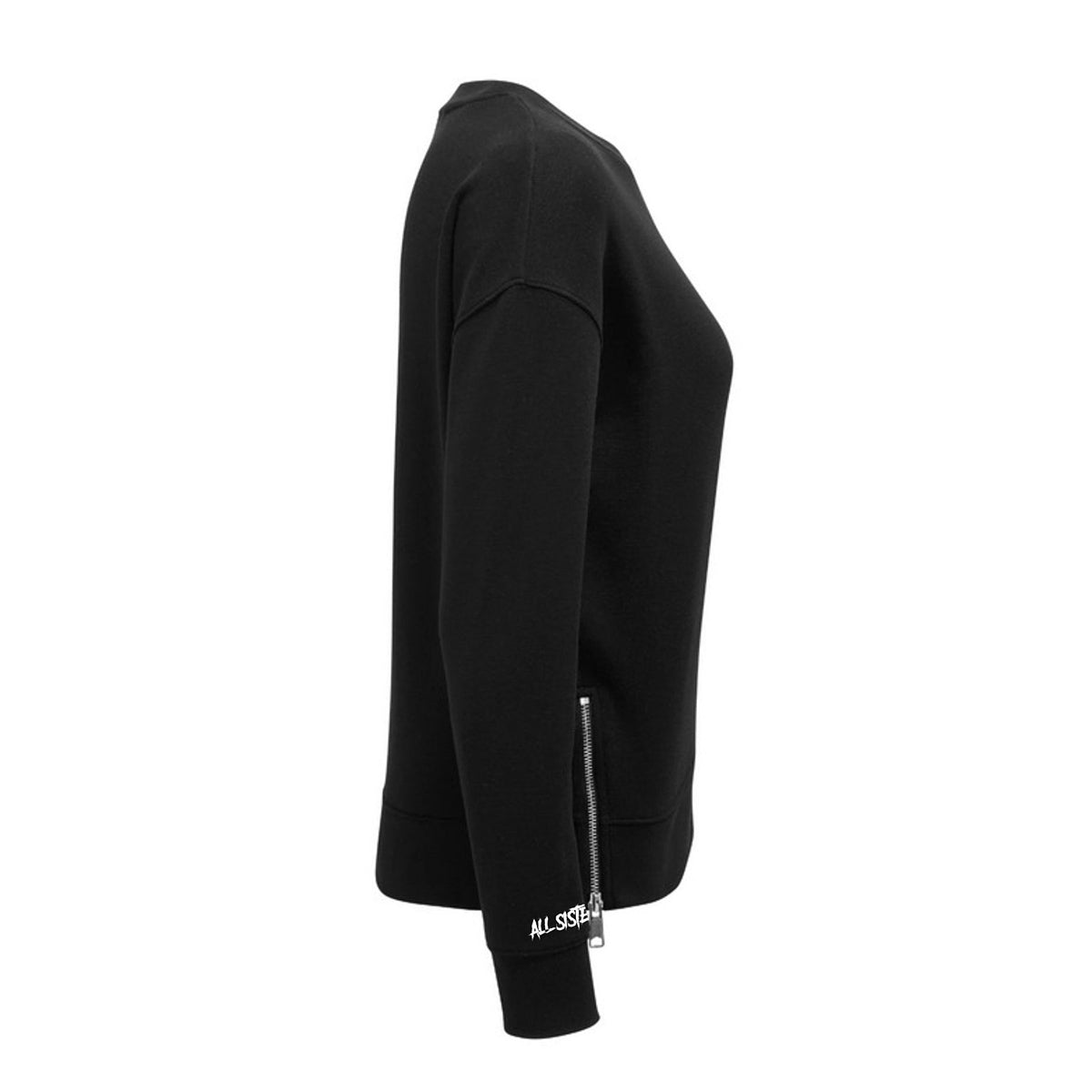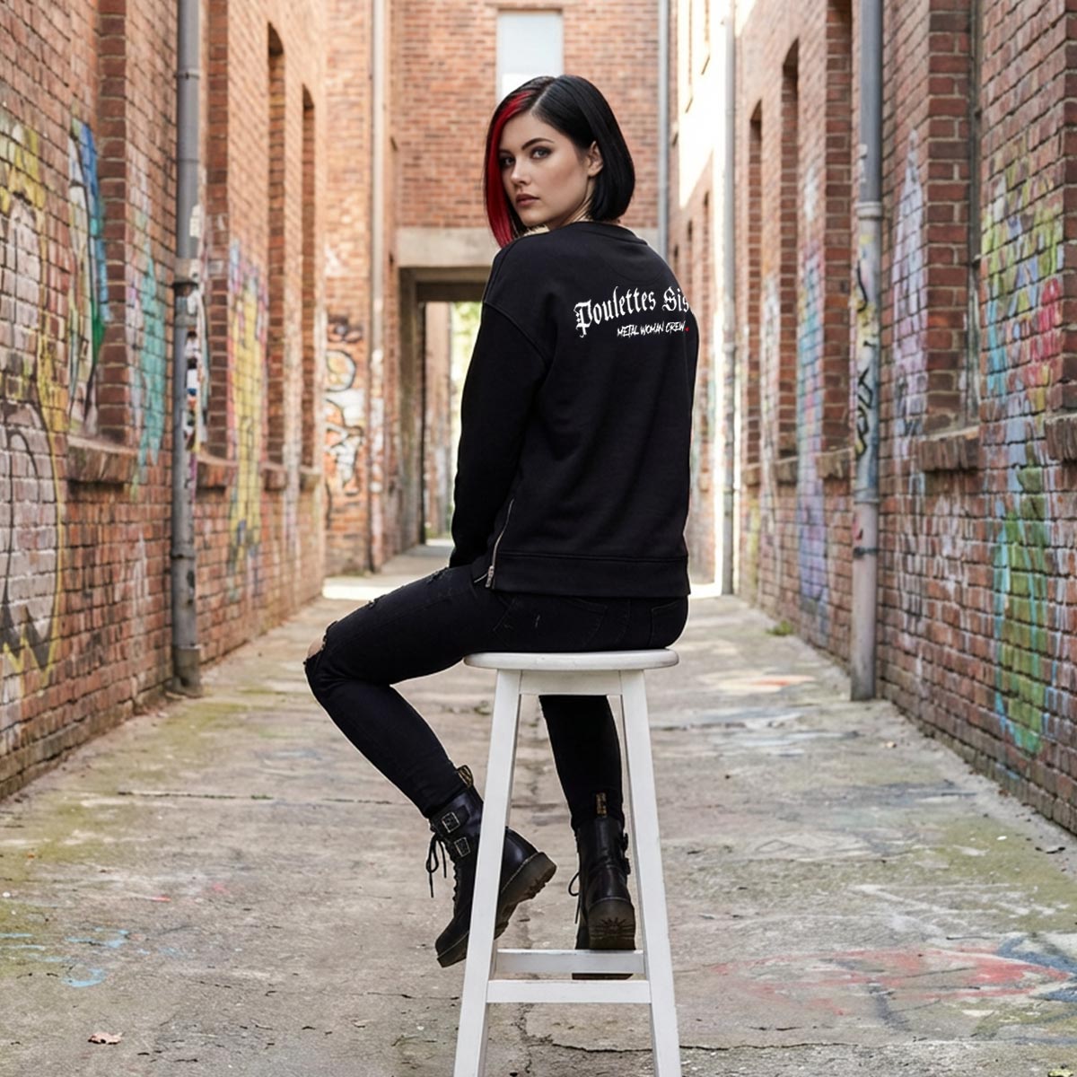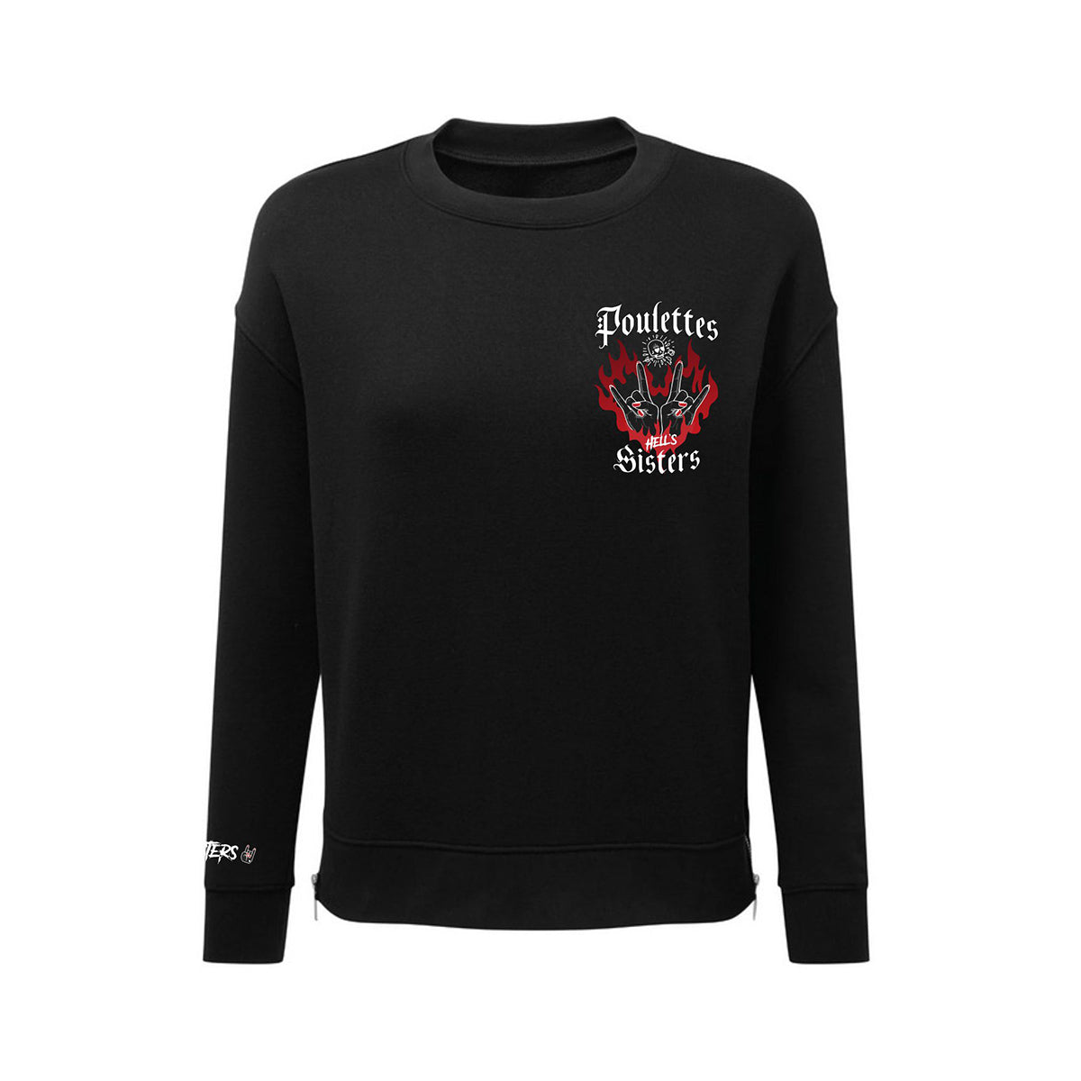 Sweat col rond, zips côtés, Femme "Hell's Sisters" Noir